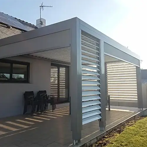 - Système bioclimatique : lames orientables pour réguler la luminosité et la chaleur mais également pour se protéger du vent et de la pluie